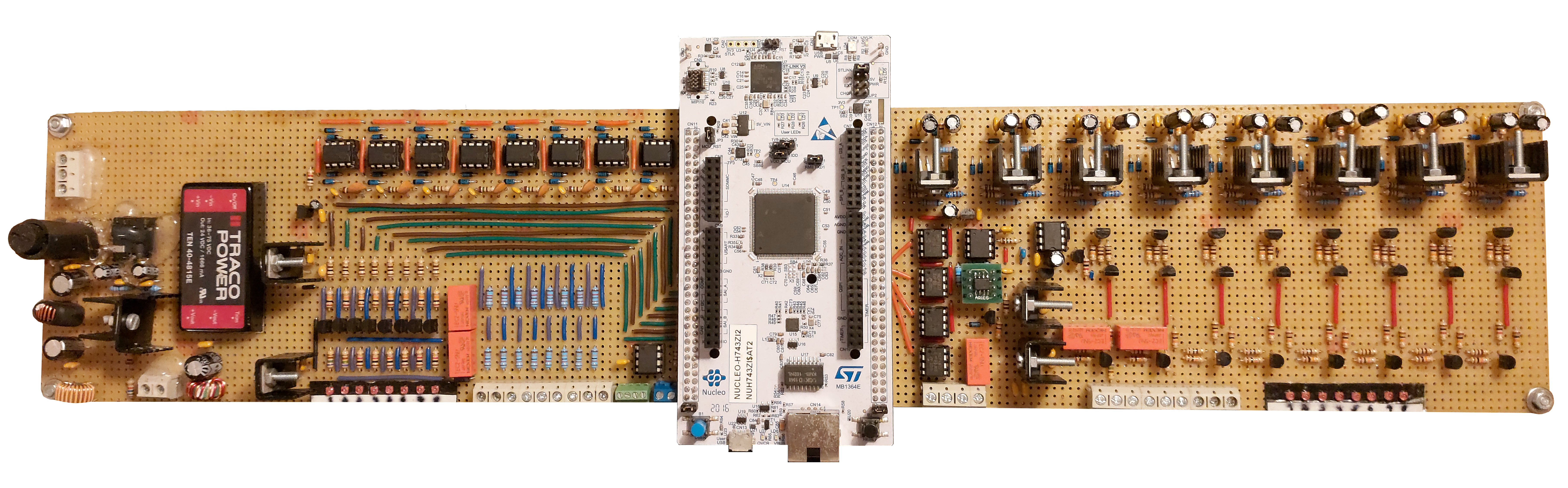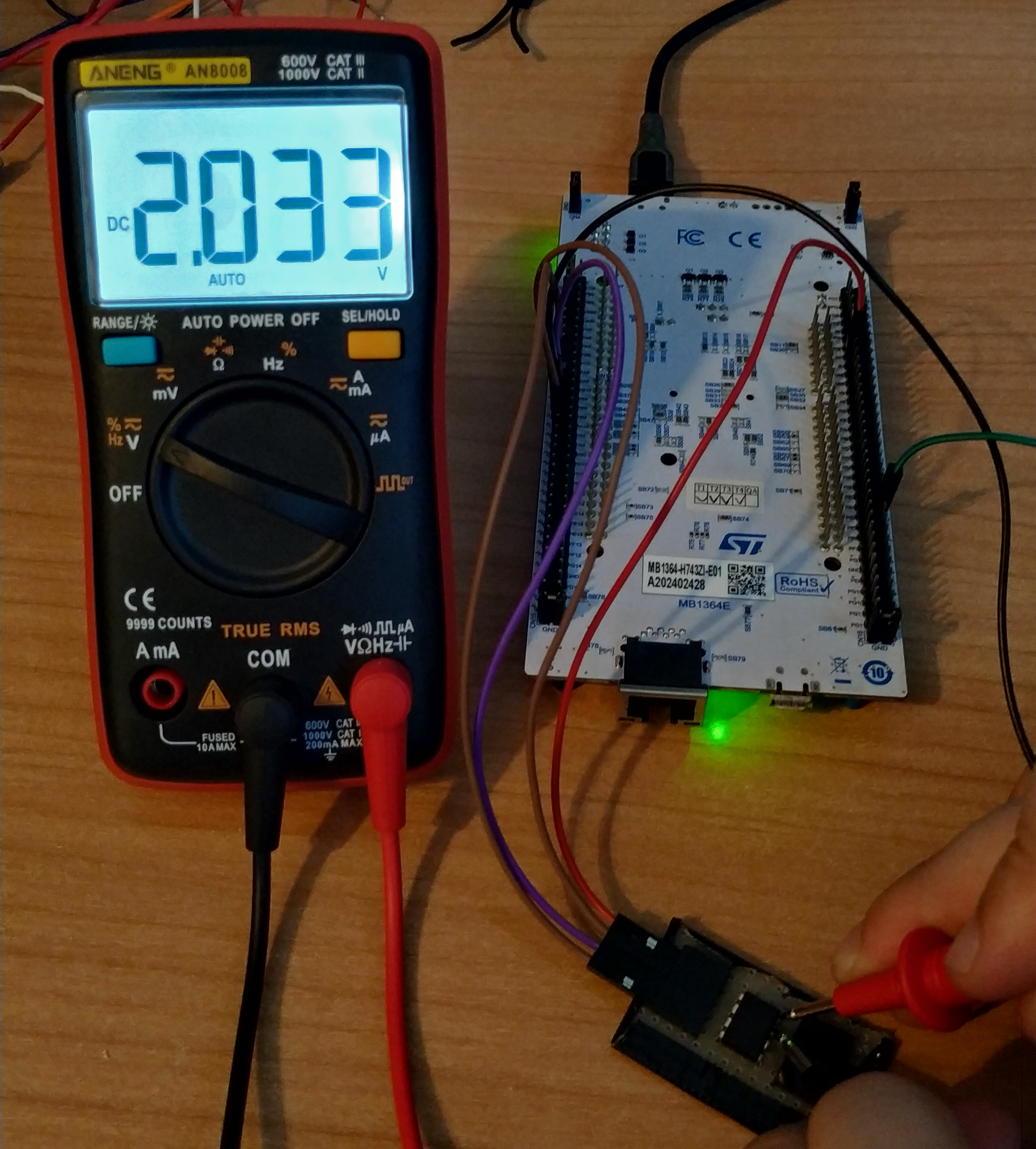 Construiu-se, ao longo deste ano letivo, um dispositivo baseado em microcontrolador (STM32) através de uma placa de desenvolvimento STM32H743ZI2, alimentada através da conexão USB com o computador, com as seguintes caraterísticas: