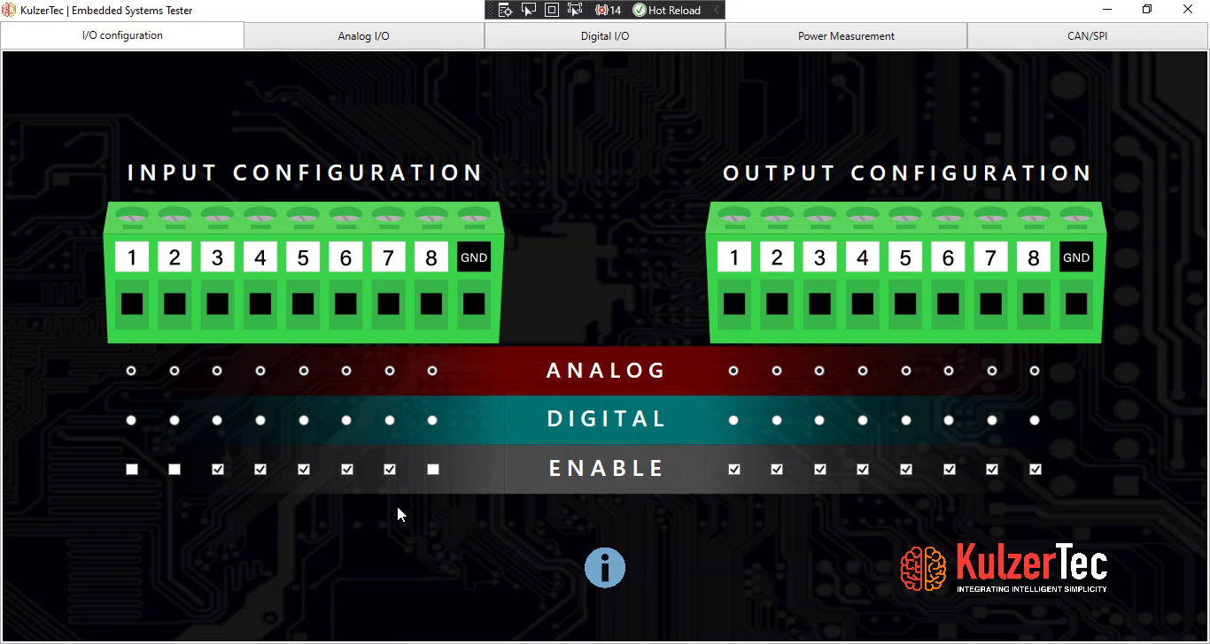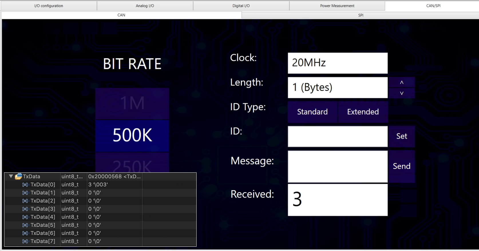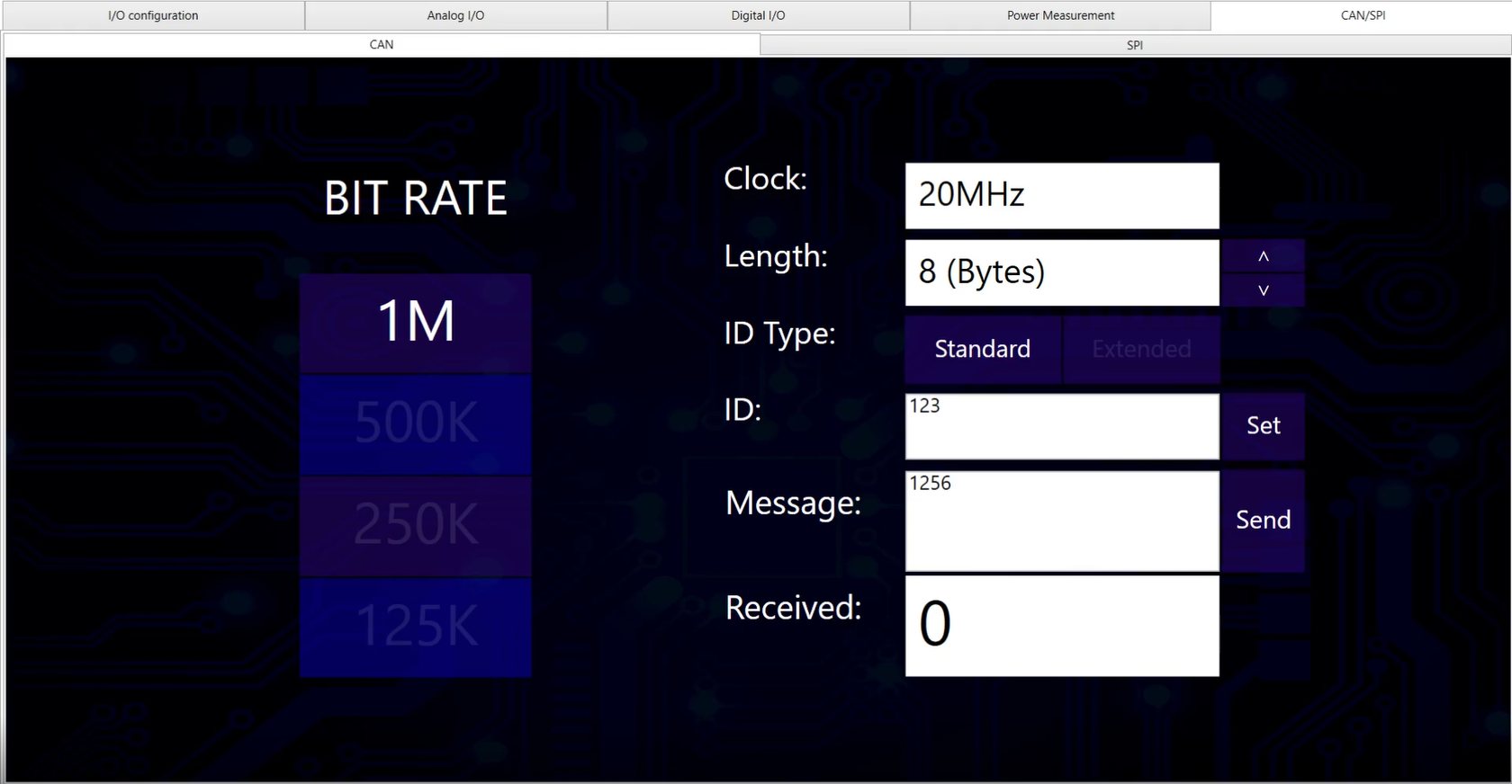 - Envio e receção de dados através de interfaces digitais (RS232, SPI, CAN).