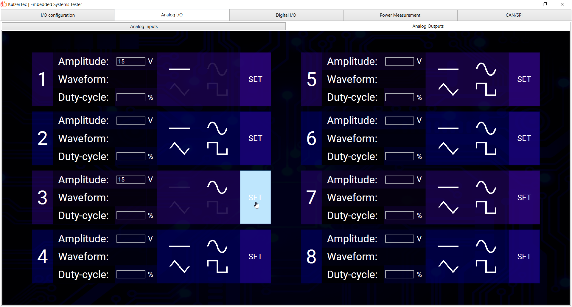 | Aplicação para Windows (3/7) | Formas de onda enviadas para as saídas analógicas: |