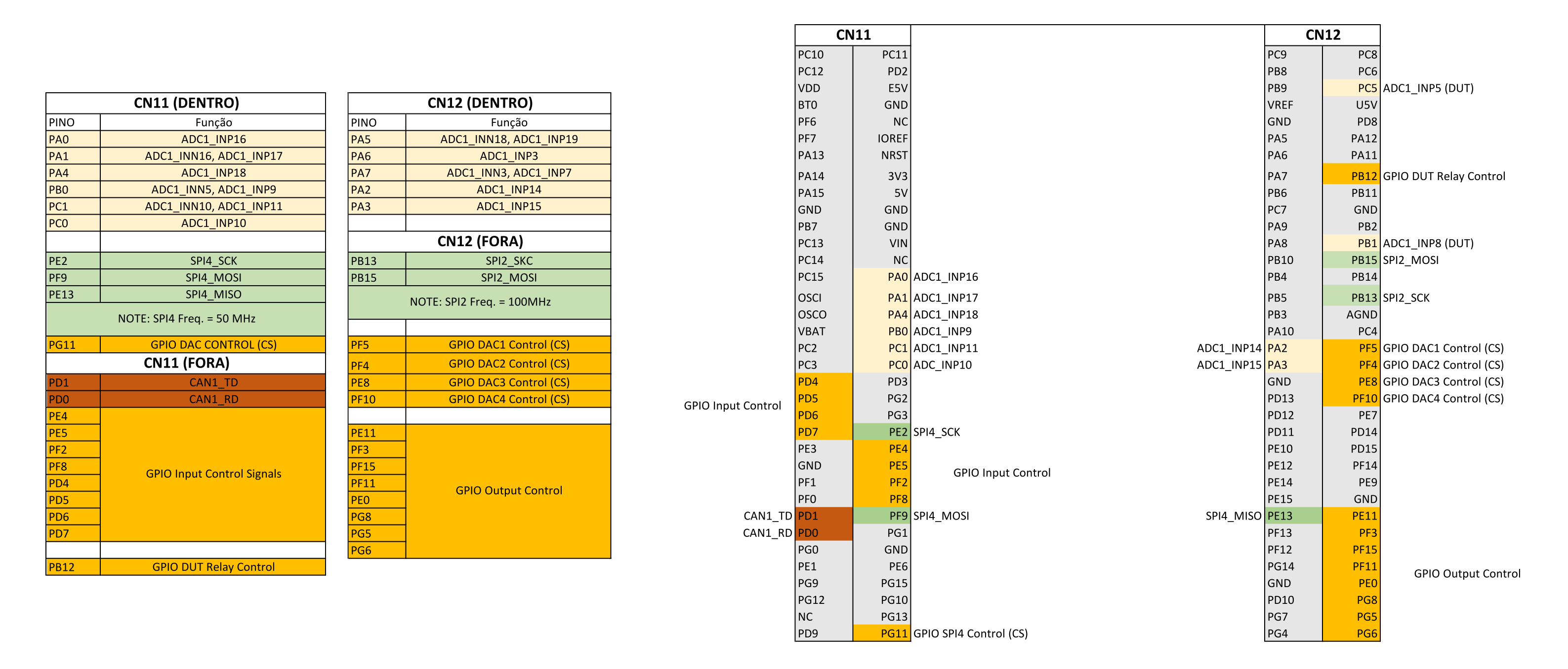 Pinout da placa de desenvolvimento STM32H743ZI2 para este projeto: