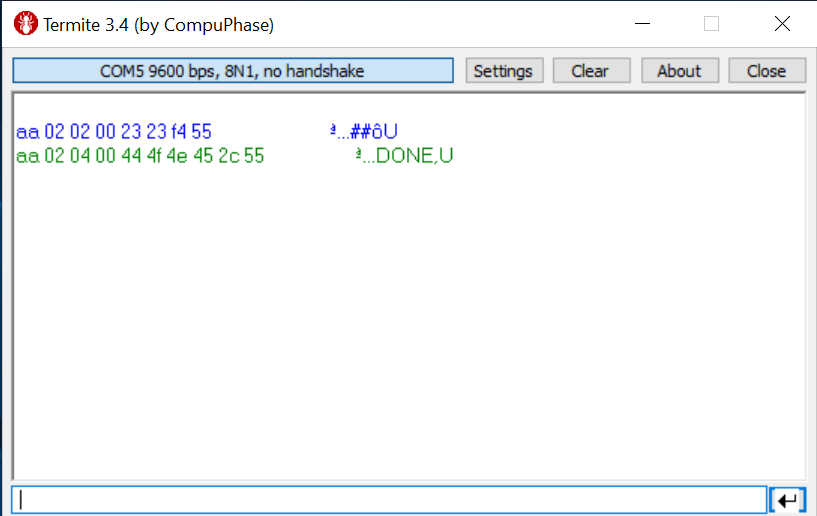 | Exemplos de fases de teste (3/5) | Firmware/software - comunicação entre computador e STM32 (Termite): |